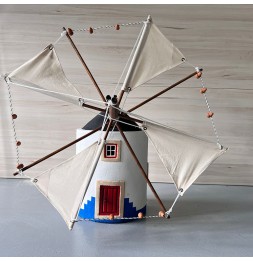 Reproduction artisanal miniature de moulins à vent mélangeant les matières pour un magnifique rendu original